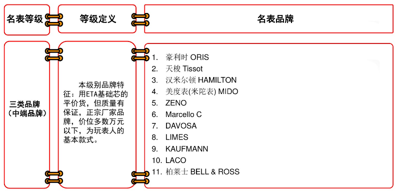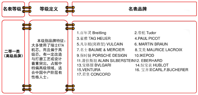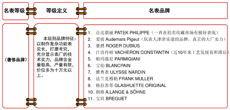 由創(chuàng)立的瑞士手表品牌,堅(jiān)持“專業(yè)手工定制”,打造精致而有意義的精品手表。手表背面會刻上制造商的名字,以示責(zé)任和保證,品牌理念是“駕馭常規(guī),創(chuàng)造創(chuàng)新”。手表品牌等級梯形圖。