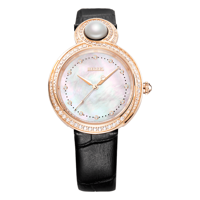 4,牛皮(RUNOSD)女性手表時尚全自動玫瑰金陶瓷女性表自白