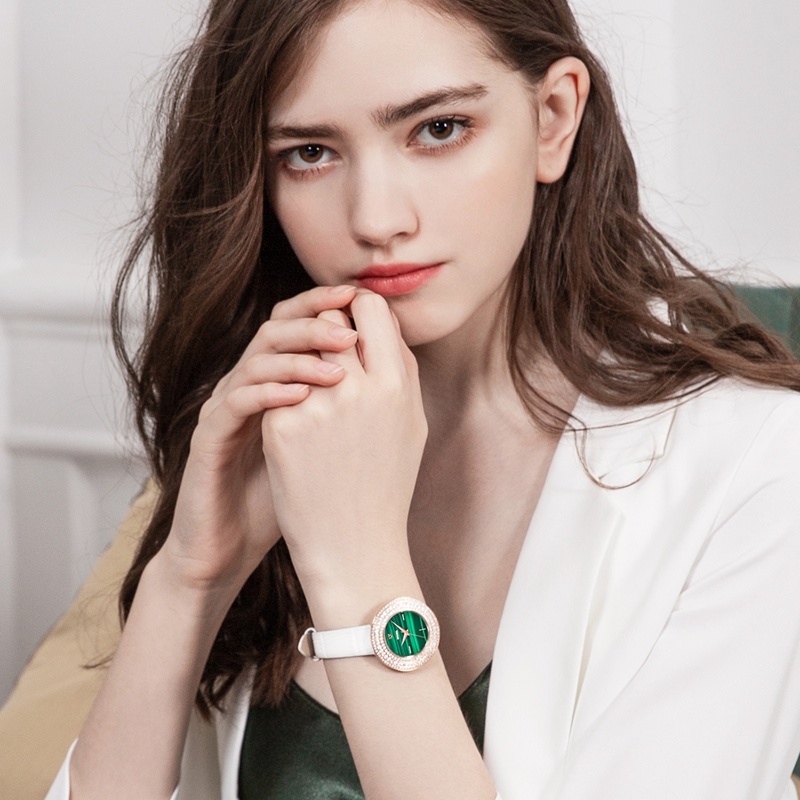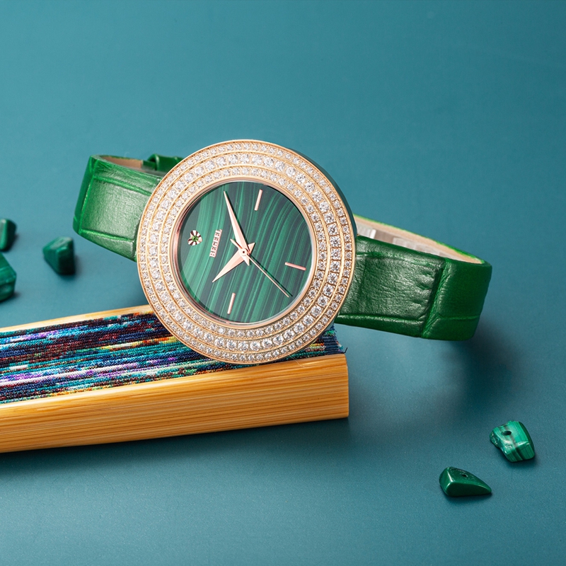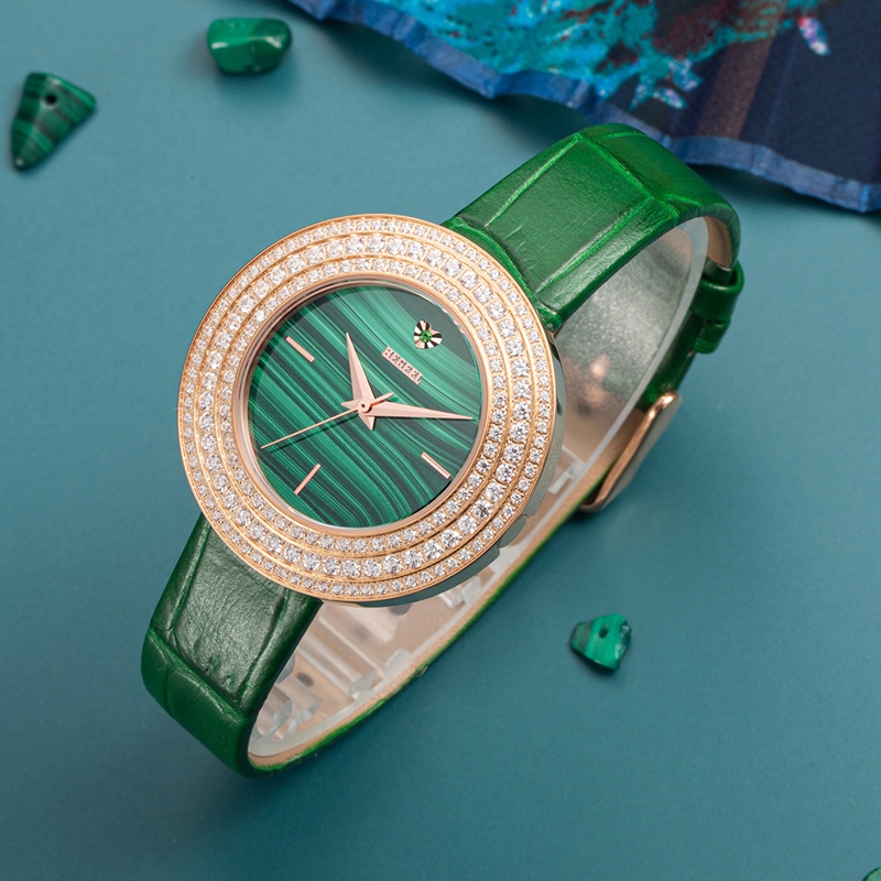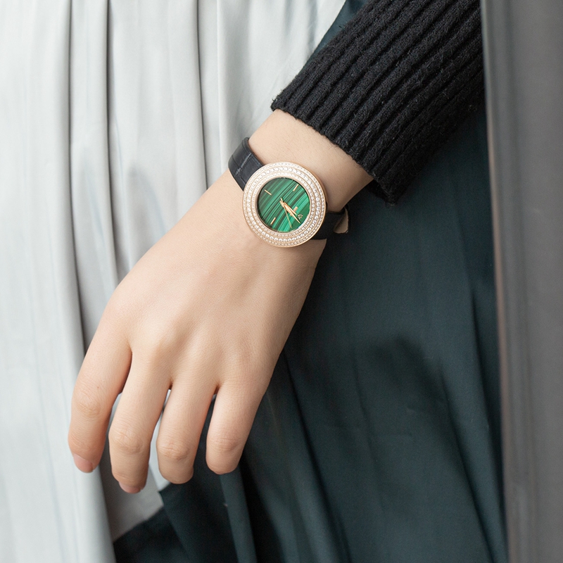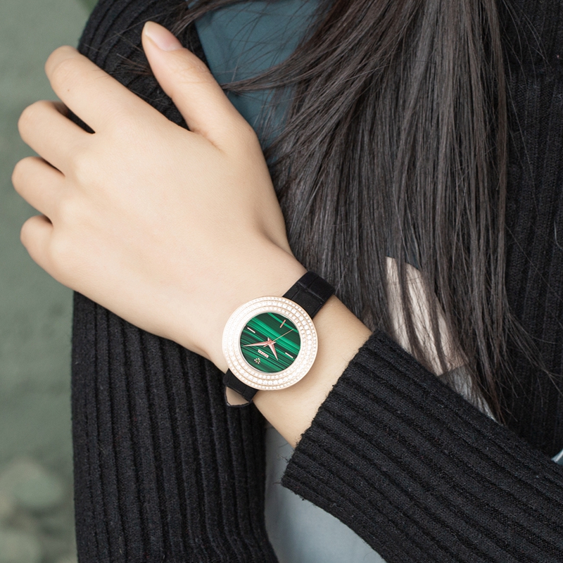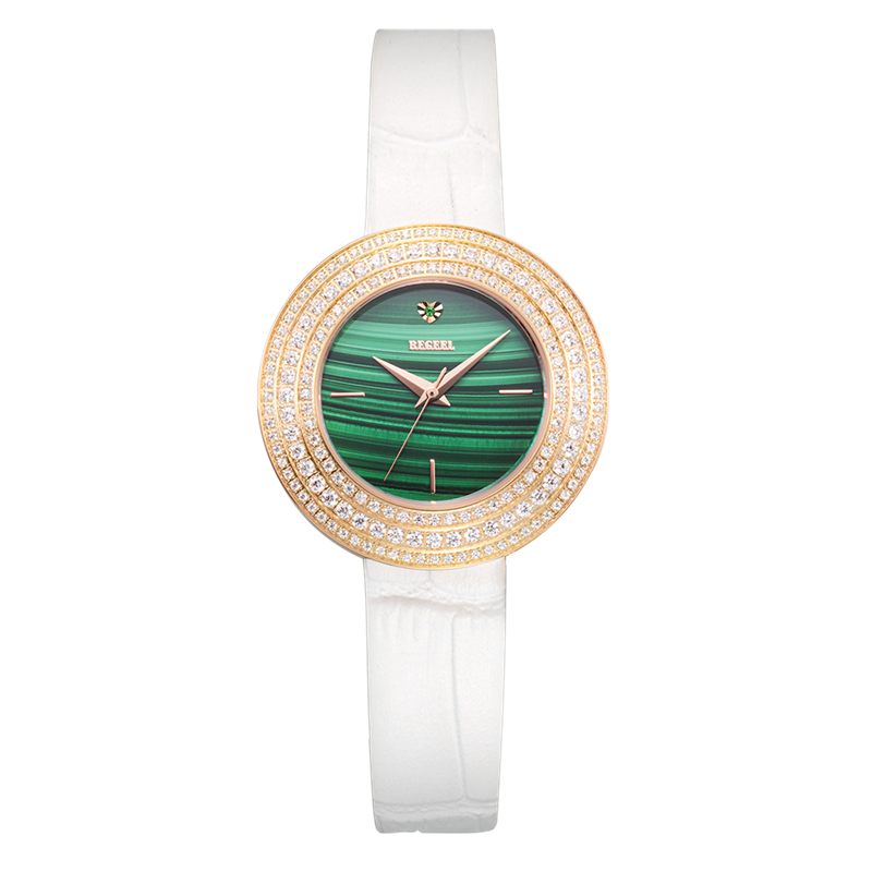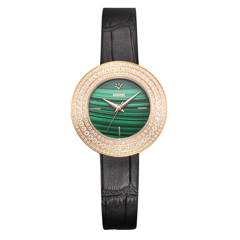 表殼:316L鋼 電鍍玫瑰金, 鑲3排水晶鉆共177顆
