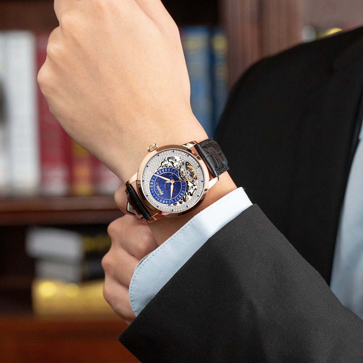 BEGEEL賓爵流金時光男士真鉆機械腕表