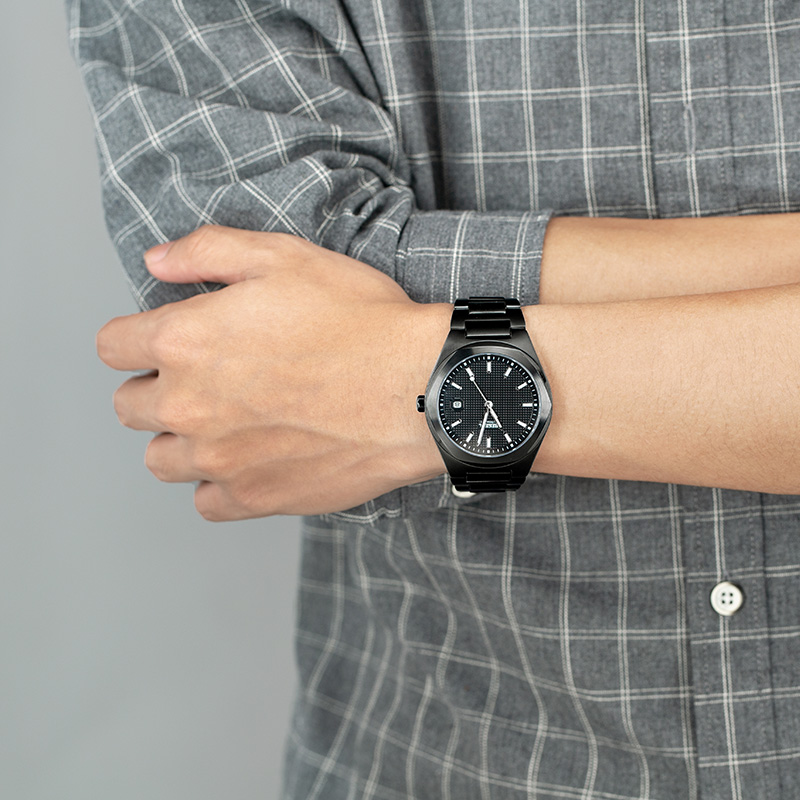 別具建筑元素,與316L精鋼(電鍍黑)材質完美融合,以黑色的姿態探索前所未有的美學語言。它顯得更加簡約低調,同時又更具先進嶄新的感覺。將無窮無盡的黑色融入到新穎的設計之中,足顯陽剛沉穩。