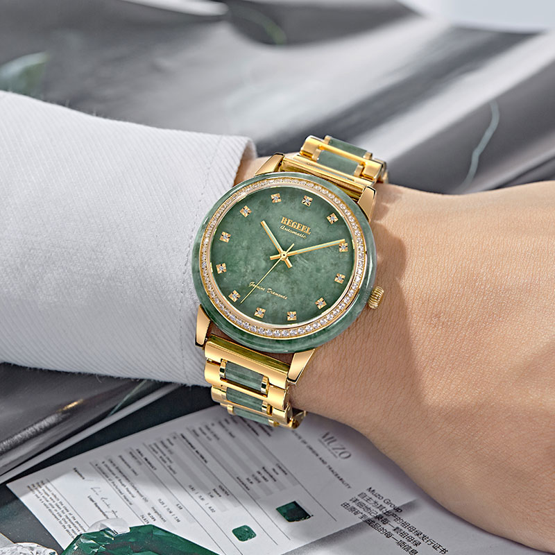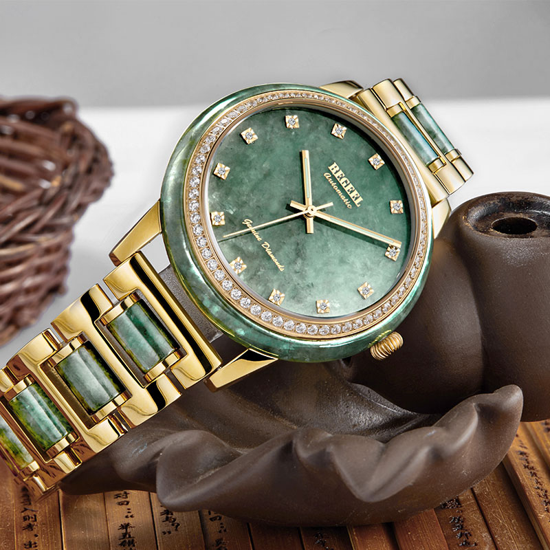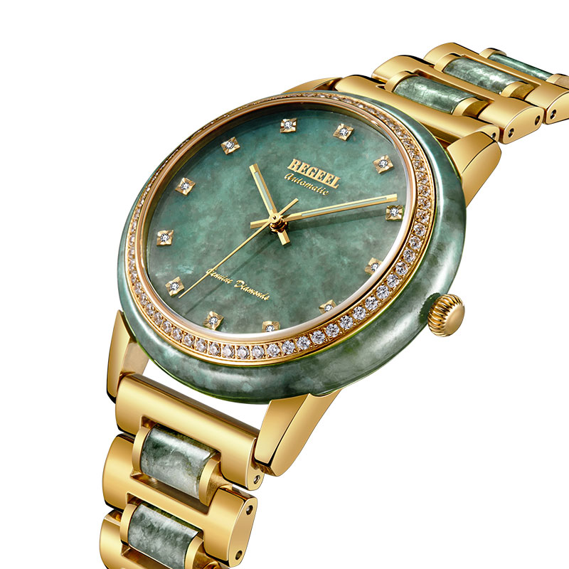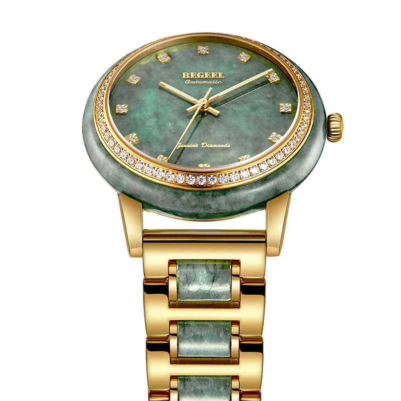 表殼:翡翠殼,316L精鋼電金圈口,鑲62粒水鉆