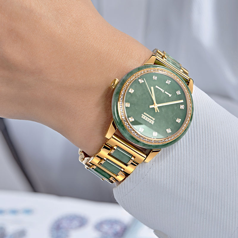 表帶:翡翠珠帶+316L精鋼電鍍?nèi)?/p>