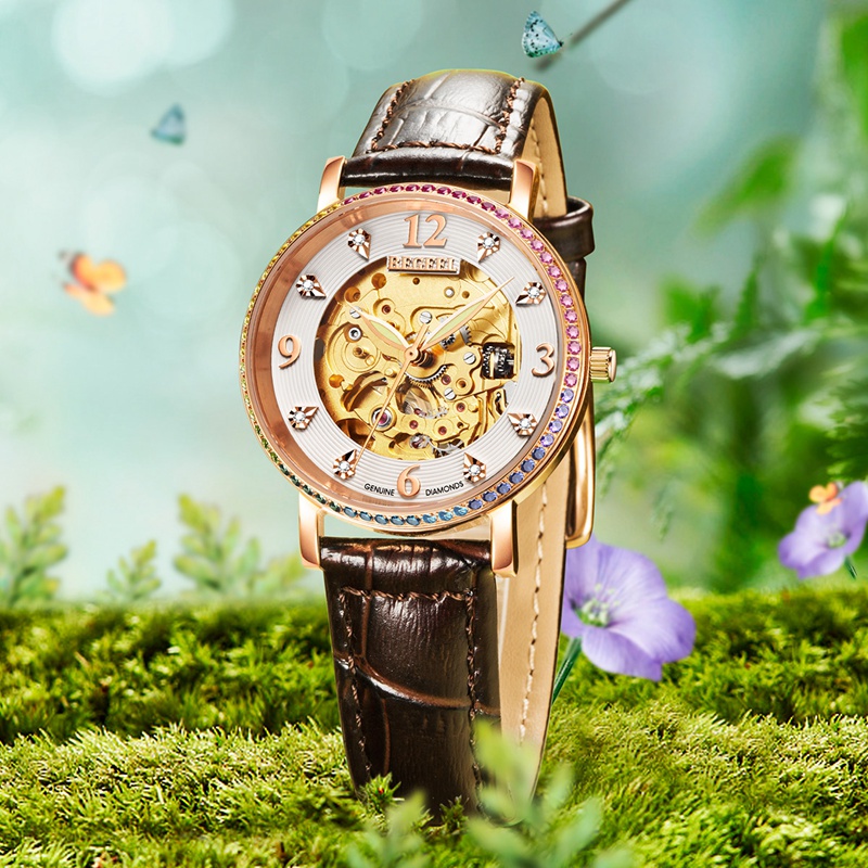 瑞士剪紙以特有的細致和精巧見長,其傳統可以追溯至三個世紀之前的“卡尼維”(Canivet)—— 由花邊剪紙裝飾的小型宗教圣像畫,設計師從中汲取靈感,不拘泥于傳統鏤空表的模式,也沒有復雜的雕刻花紋,取而代之的是摩登現代的造型和高新技術的運用,在充分詮釋曲線鏤空之美的圓表盤之下藏著堅毅獨立的機械機芯,傳遞出兼具柔美與堅毅的力量,自信展示真我的天性魅力。