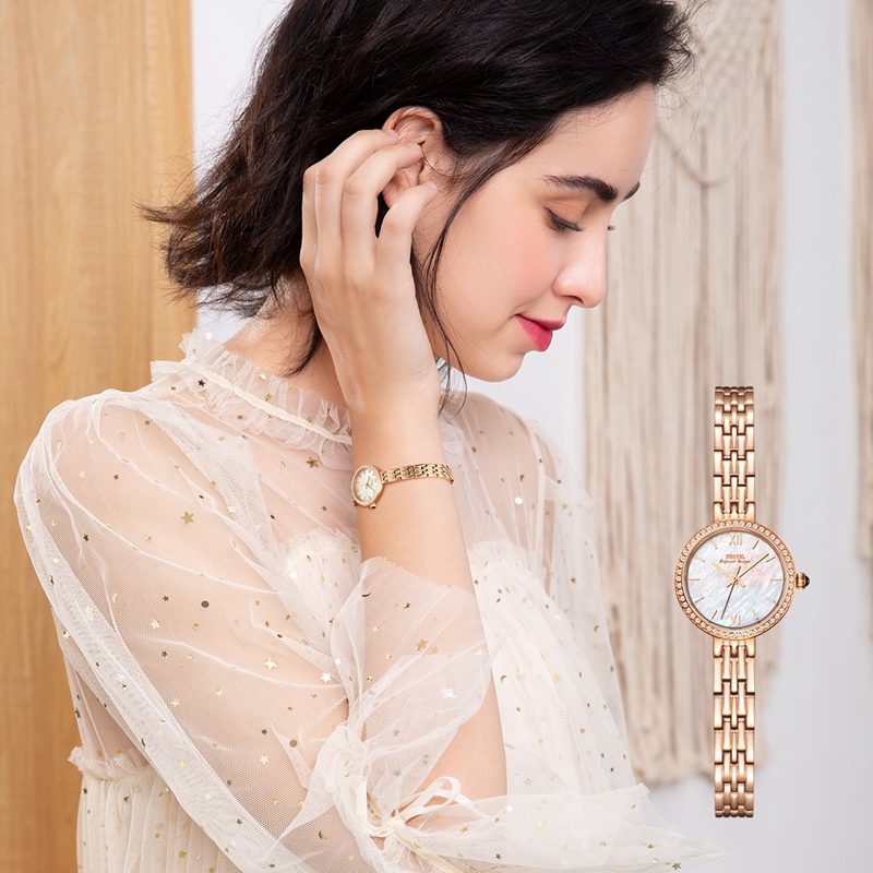 表殼:316L鋼+電鍍玫瑰金 鑲52顆水鉆