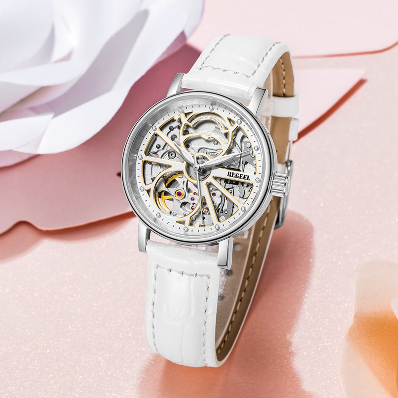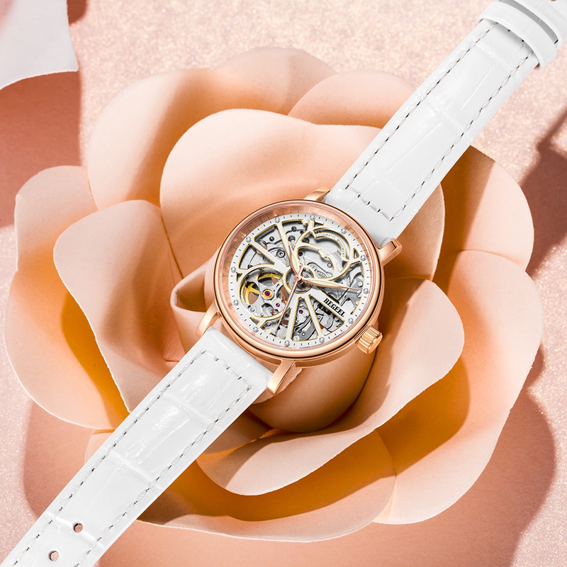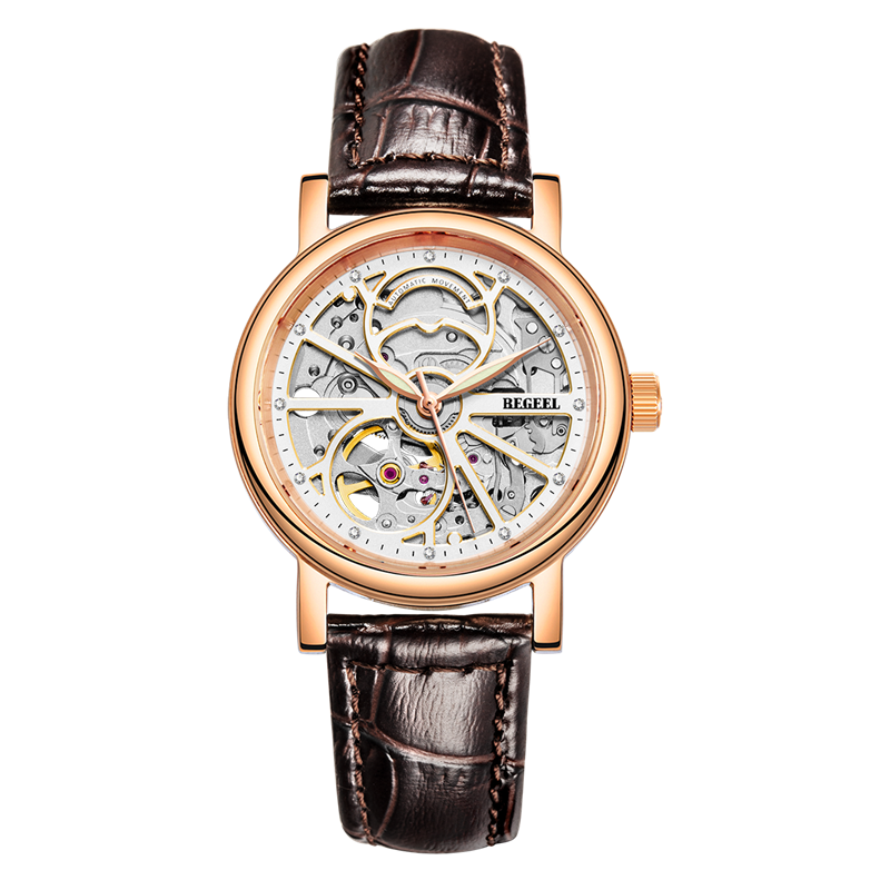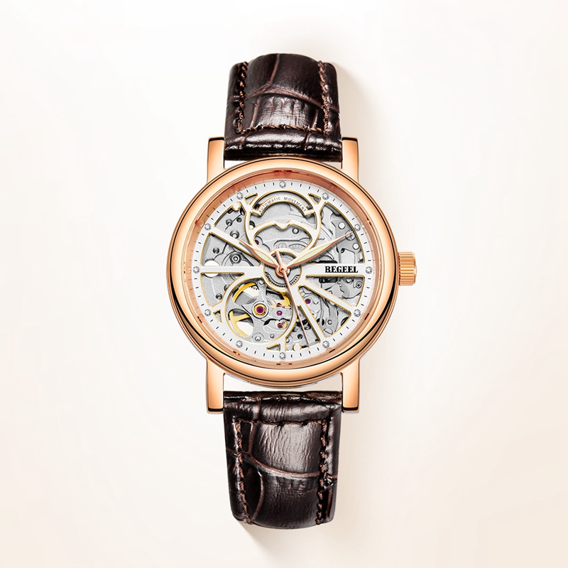 腕表采用了全鏤空表盤設計,行云流水般的線條層疊交錯,勾勒出雙子星的輪廓,別具收藏和觀賞價值。表殼采用多項打磨拋光技術,迷人的金屬色澤與立體鏤空表盤相呼應。強夜光指針,分秒清晰可見,搭配蜥蜴紋/竹節紋牛皮帶,滿滿的文藝復興的優雅氣質。腕表搭載進口全自動鏤空機械機芯,走時準確穩定。背透底蓋,可以360°鑒賞機芯運轉。
