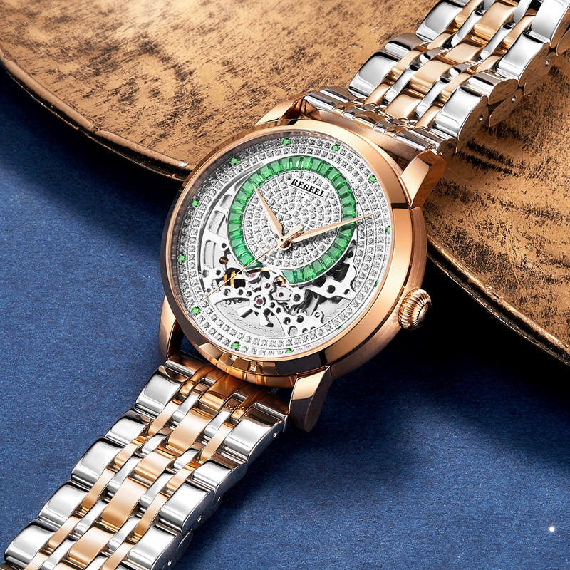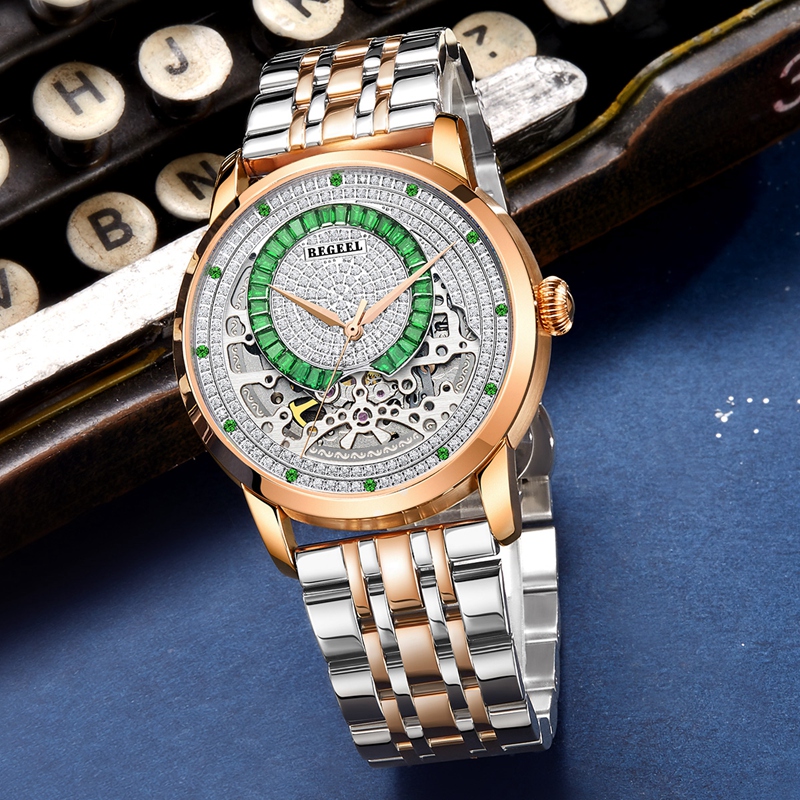 表面:12顆沙弗萊石(石榴石),240顆晶鉆,約28顆方形水晶綠寶石