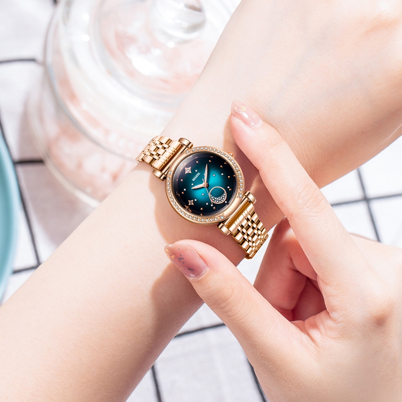 表殼:電鍍玫瑰金 鑲嵌40顆水晶鉆