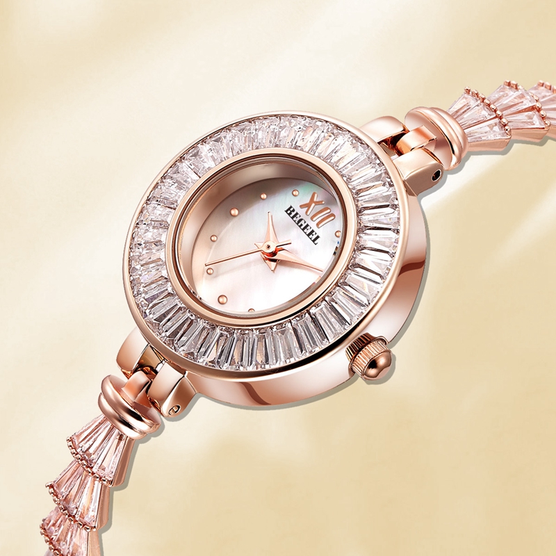 表殼:電鍍玫瑰金 鑲30顆水晶鉆
