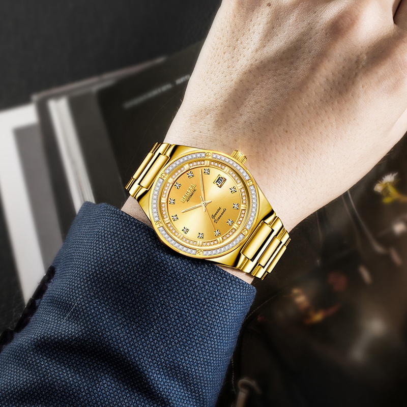 表殼:316L精鋼(電鍍真金)圈口鑲60顆晶鉆方石