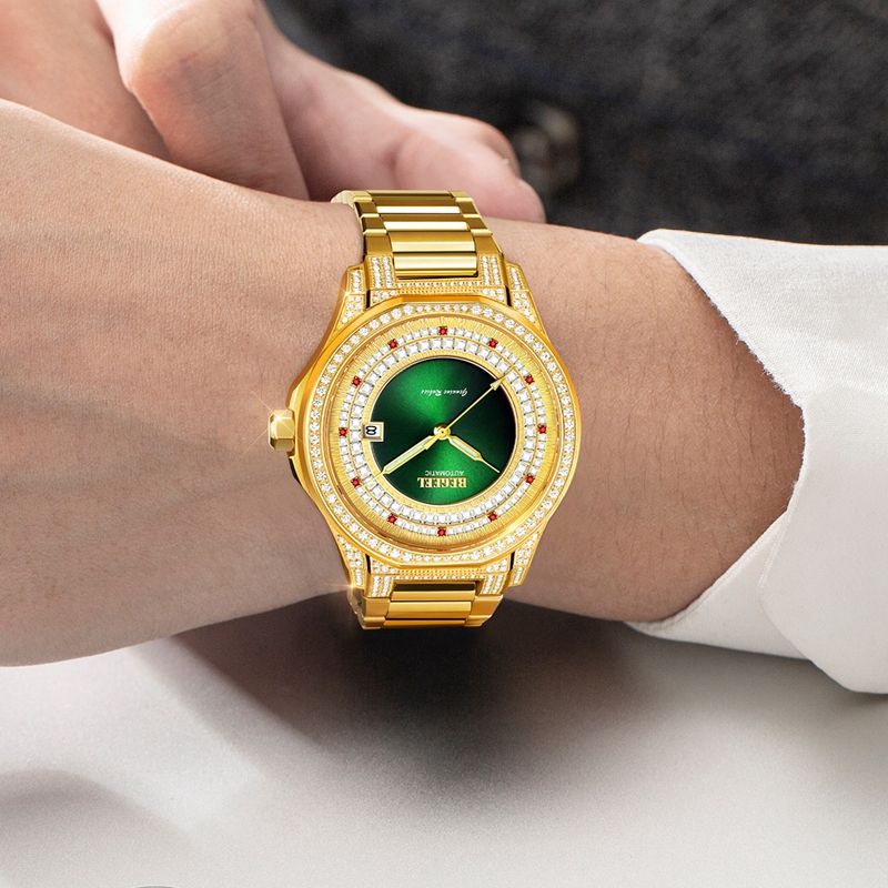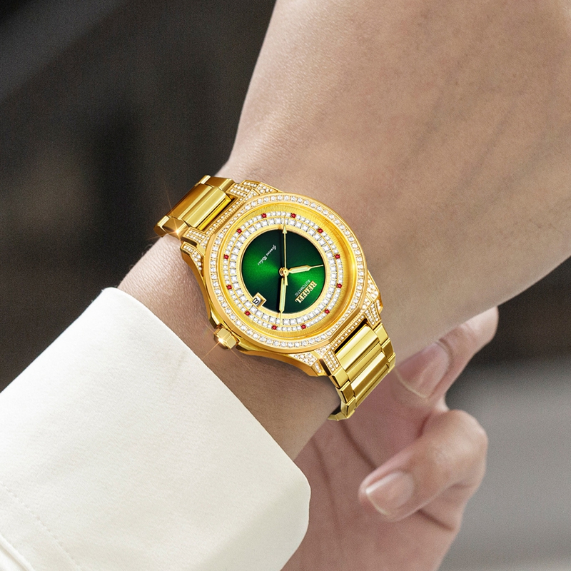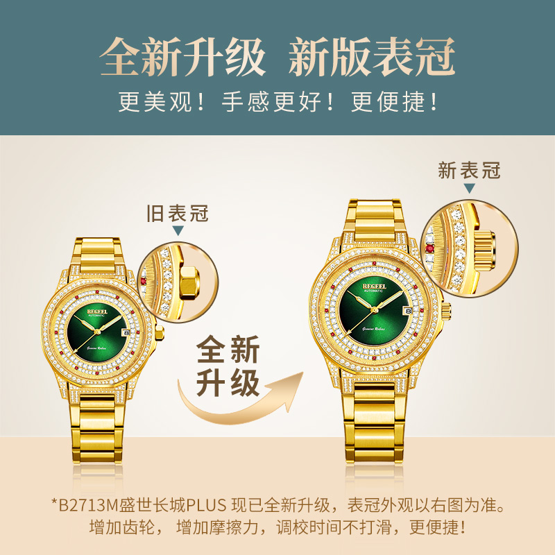 表殼:316L精鋼+電鍍真金,鑲約114顆晶鉆