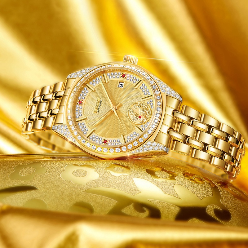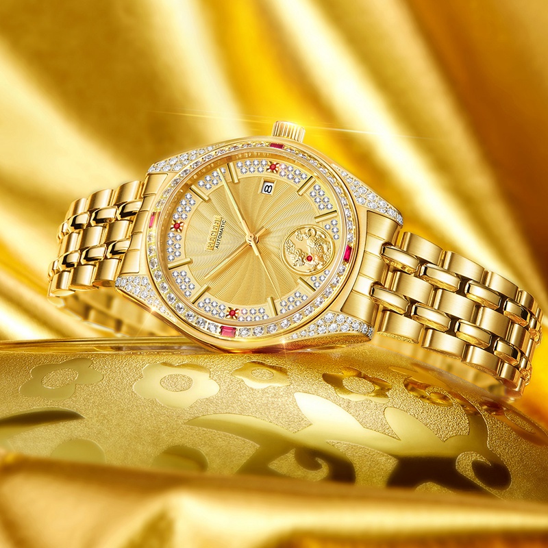 表殼:白圈口:316L精鋼電鍍真金,圈口鑲嵌46晶鉆