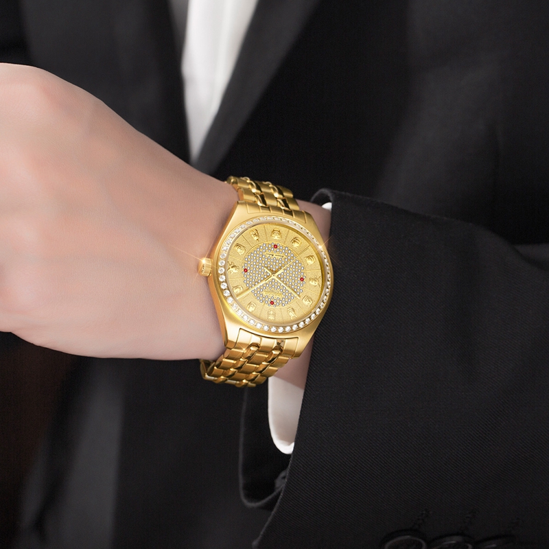 表殼:316L精鋼電鍍真金,圈口鑲46顆晶鉆