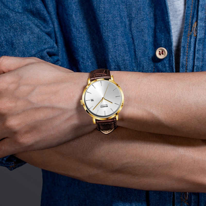 以劃破夜空的黎明之劍為主要設計靈感,寓意光明與守護、剛毅與純真,腕表整體設計風格經典大氣、氣度不凡,電鍍真金精鋼表殼搭配純色表盤,高級儒雅,夜光指針,極簡數字日歷框,于銳氣凌厲之中體現男士隱藏于簡單之后的先鋒精神,沉穩內斂,不拘一格。
