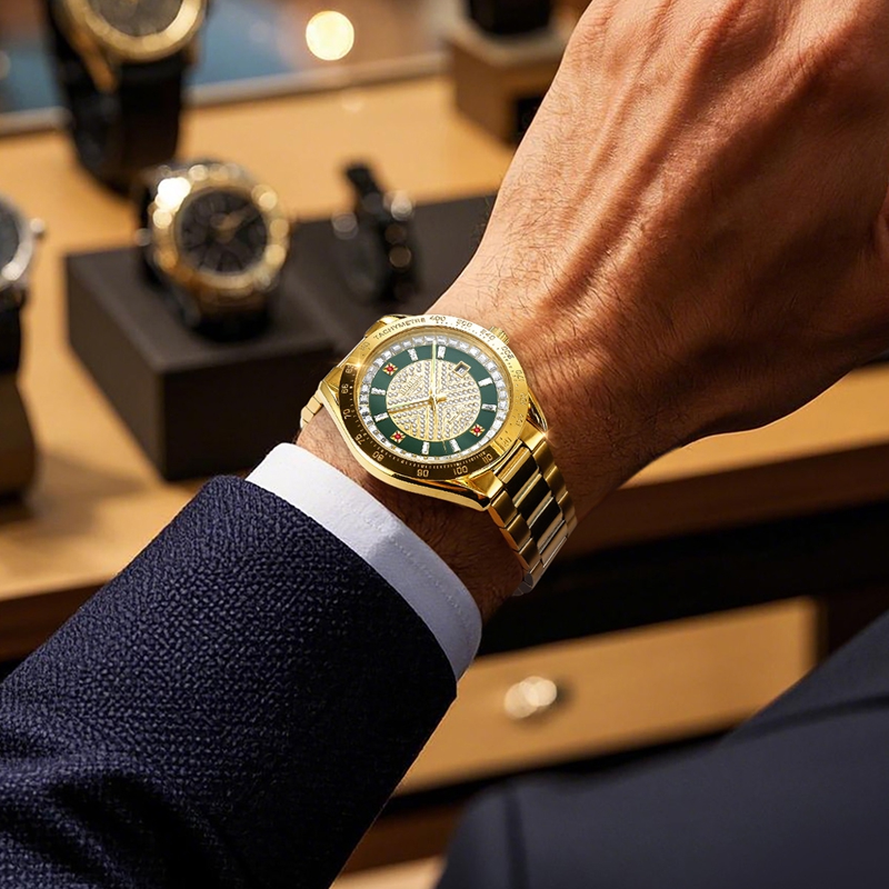 字面:3顆真紅寶石,翡翠綠色,45顆方晶鉆,136顆晶鉆,夜光針