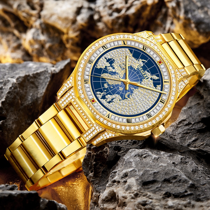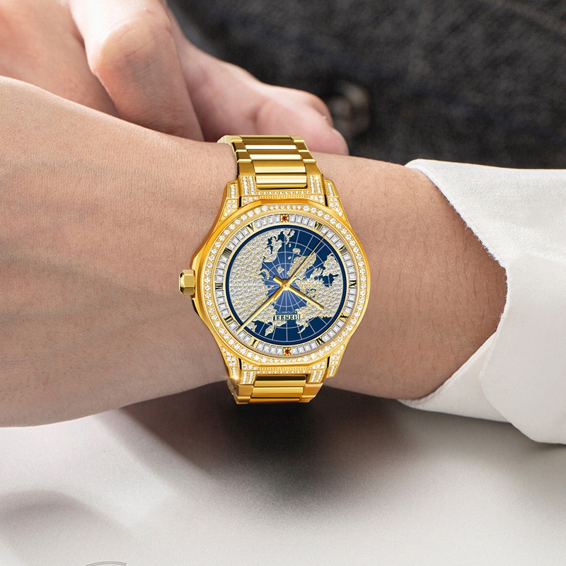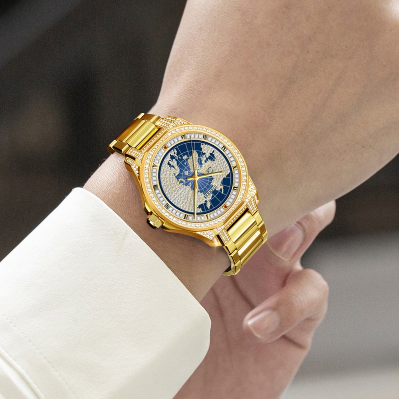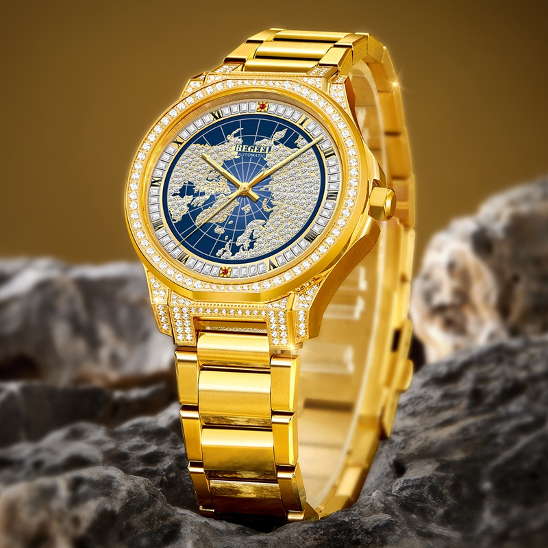 表殼:316L精鋼電鍍真金,鑲約114顆晶鉆