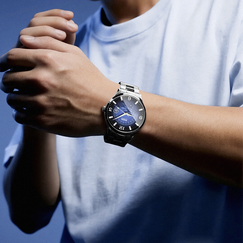 字面:1顆真鉆,豹眼紋藍面,8顆晶鉆方石,后視鏡日歷窗設計,強夜光針