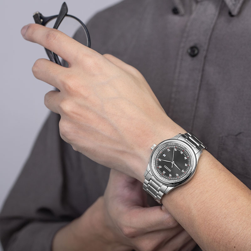 人生就像一個大轉(zhuǎn)盤,轉(zhuǎn)動的瞬間永遠不知道指針會停靠在哪里,處處充滿驚喜。賓爵設(shè)計師以幸運大轉(zhuǎn)盤為設(shè)計藍本,紅色夜光條釘與內(nèi)影數(shù)字刻度相互襯托,幸運中國紅與閃亮鉆光相互輝映,隨著指針的轉(zhuǎn)動,博弈的刺激令時間仿佛更有意義。