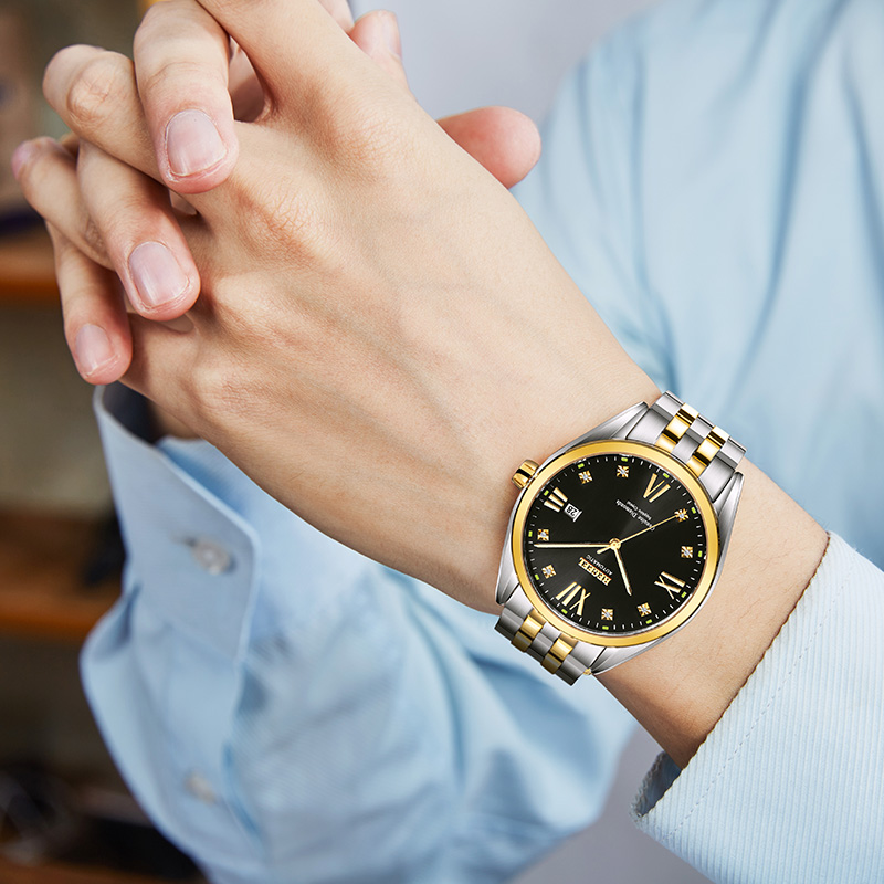 堅持簡約優雅的設計方向,以精湛工藝打造的輕奢表款,設計師藉由金色豪華跑車激發靈感,將跑車的流線型結構融入整個腕表設計。擷取跑車流暢兼具動感的身型線條,融合現代美學,打造流線型的精鋼表殼,簡約利落的線條彰顯現代男性不可或缺的陽剛美和力量感。